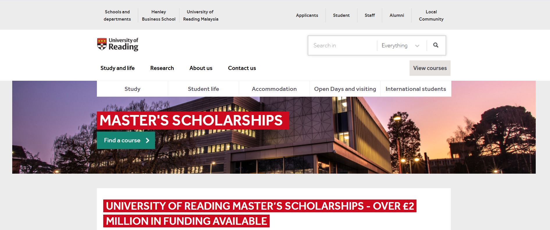- Applicants must have received an offer to study one of the eligible master's programmes indicated above at the University of Reading.