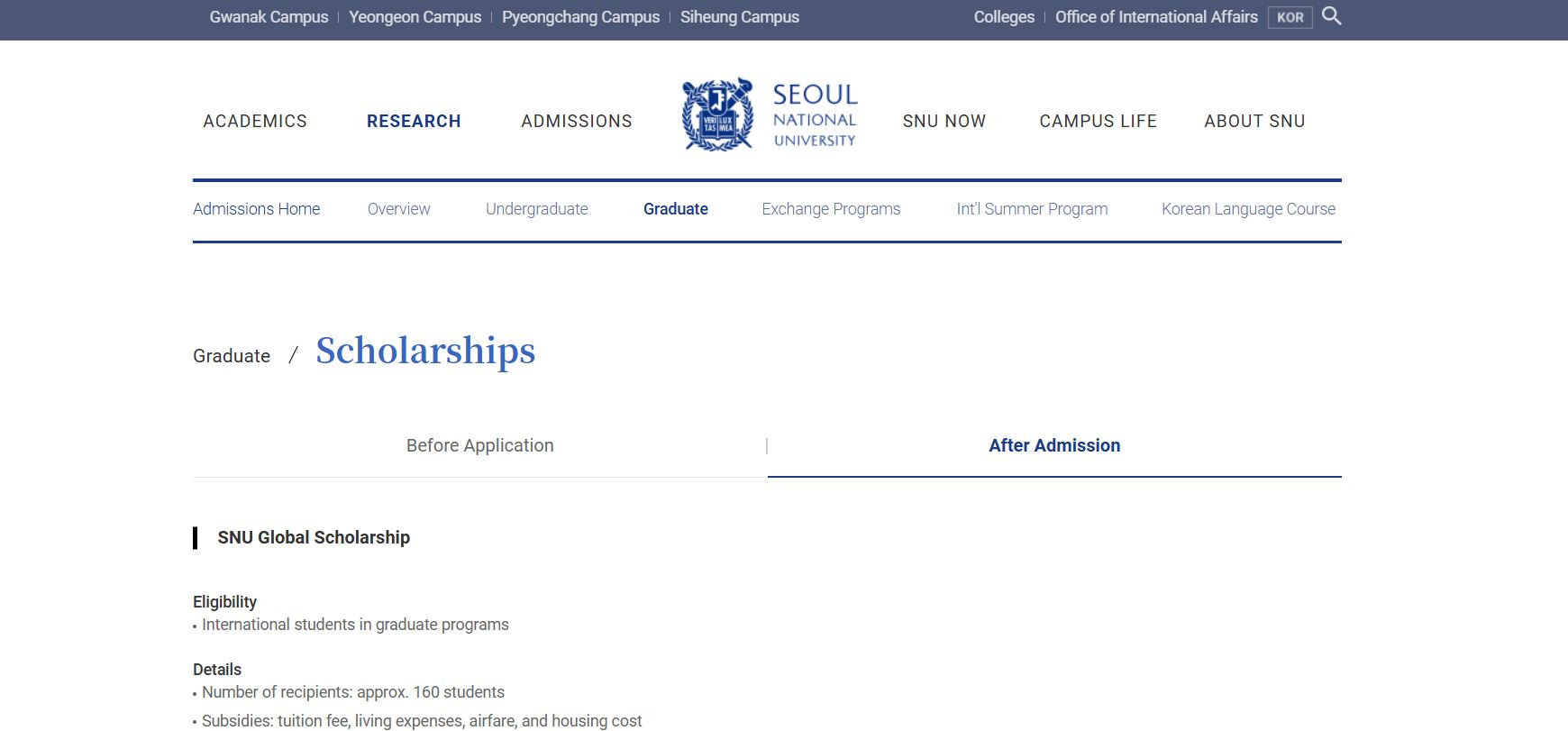 - No Separate Application: The great thing about this scholarship is that you don’t have to fill out a separate application. It’s automatically taken into account once you’re admitted to SNU.