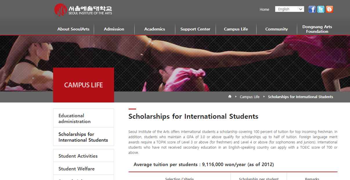 Admission Requirements: Applicants must attain a minimum GPA of 3.0 or above to qualify to get into Seoul Arts.