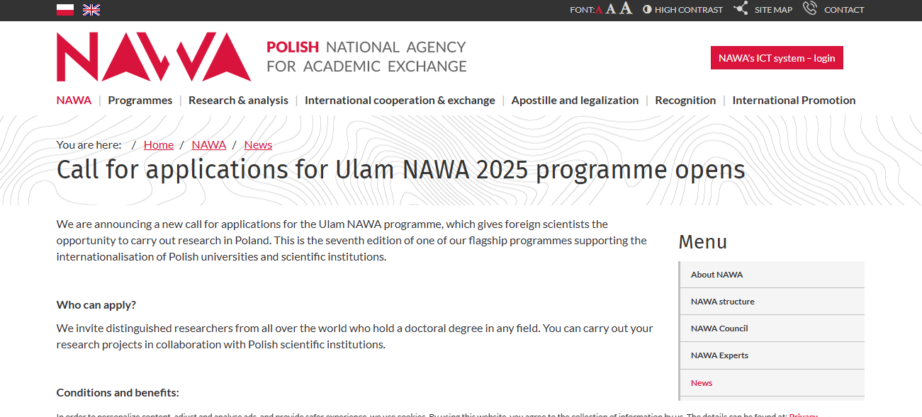 The Applications are open to apply for the Poland NAWA Ulam Program 2025. It is a Fully Funded Program Funded by the Polish Government through the National Agency for Academic Exchange (NAWA).