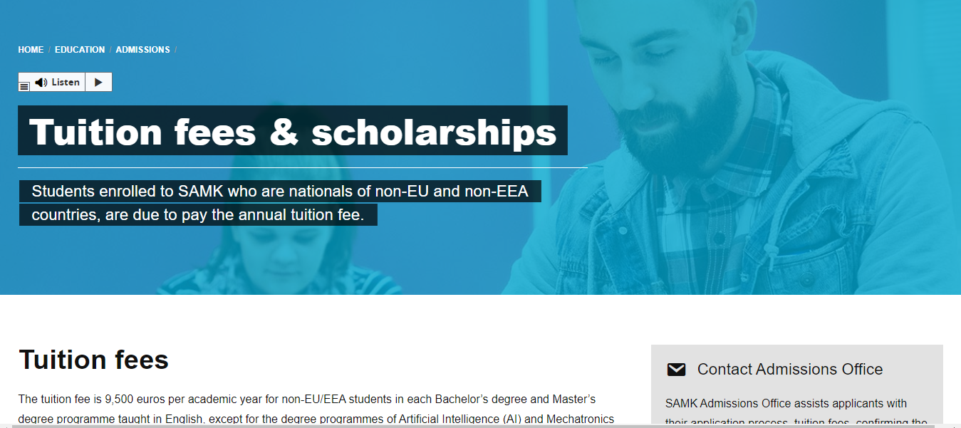 Admission Requirements: The applicants must hold high academic records in their previous education records to be accepted in any programme at SAMK.