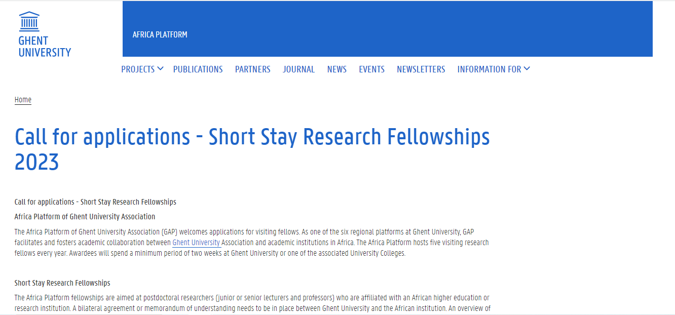 Africa Platform of Ghent University Association (GAP) is inviting outstanding applicants to apply for Short Stay Research Fellowships for International Students. The grant is available for the academic session 2023-2024.